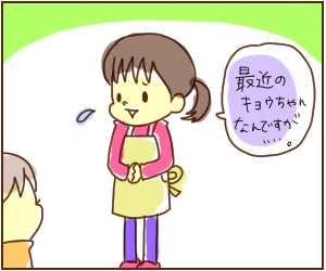 長男の登園拒否物語。 2016/02/01 去年の10月末の話です。 年長のキョウタの担任の先生から、 「キョウちゃん、最近ちょっと落ち着きのない日が増えてきて…。話を聞く時間も体ごと違う方向むいちゃったり、ぼーっとすることが結構あるんです。でも、部屋から飛び出すとか、かんしゃくを起こすとか ... 続きを読む