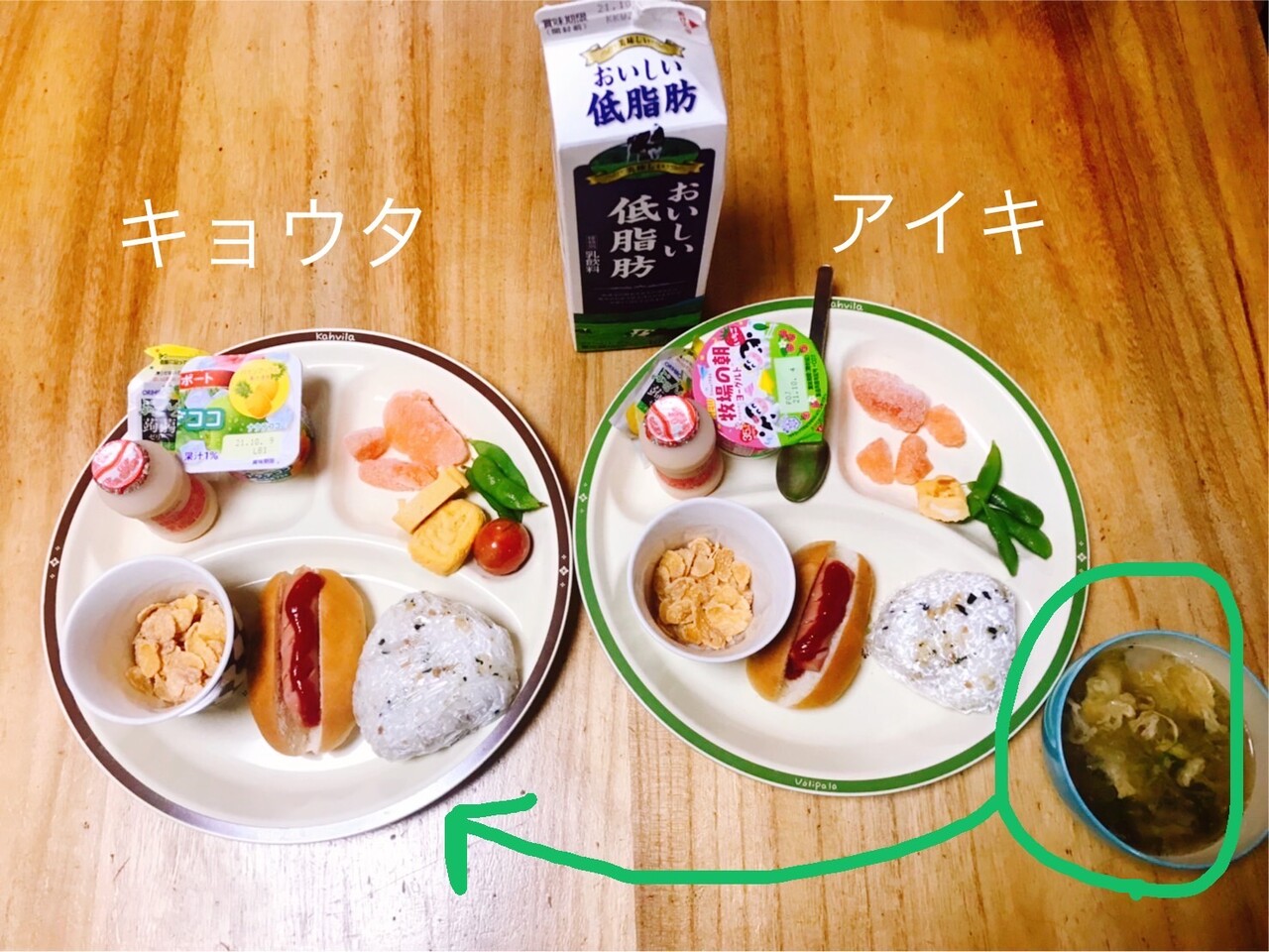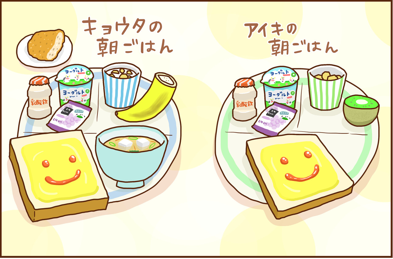 しかも、キョウタ君とアイキ君で、パンが何気に6枚切と8枚切で違う…!