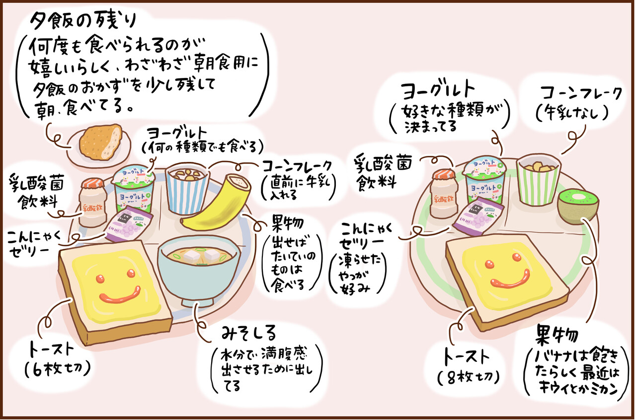 うちだったらコーンフレークのみとかトーストとヨーグルトのみになりそうです。