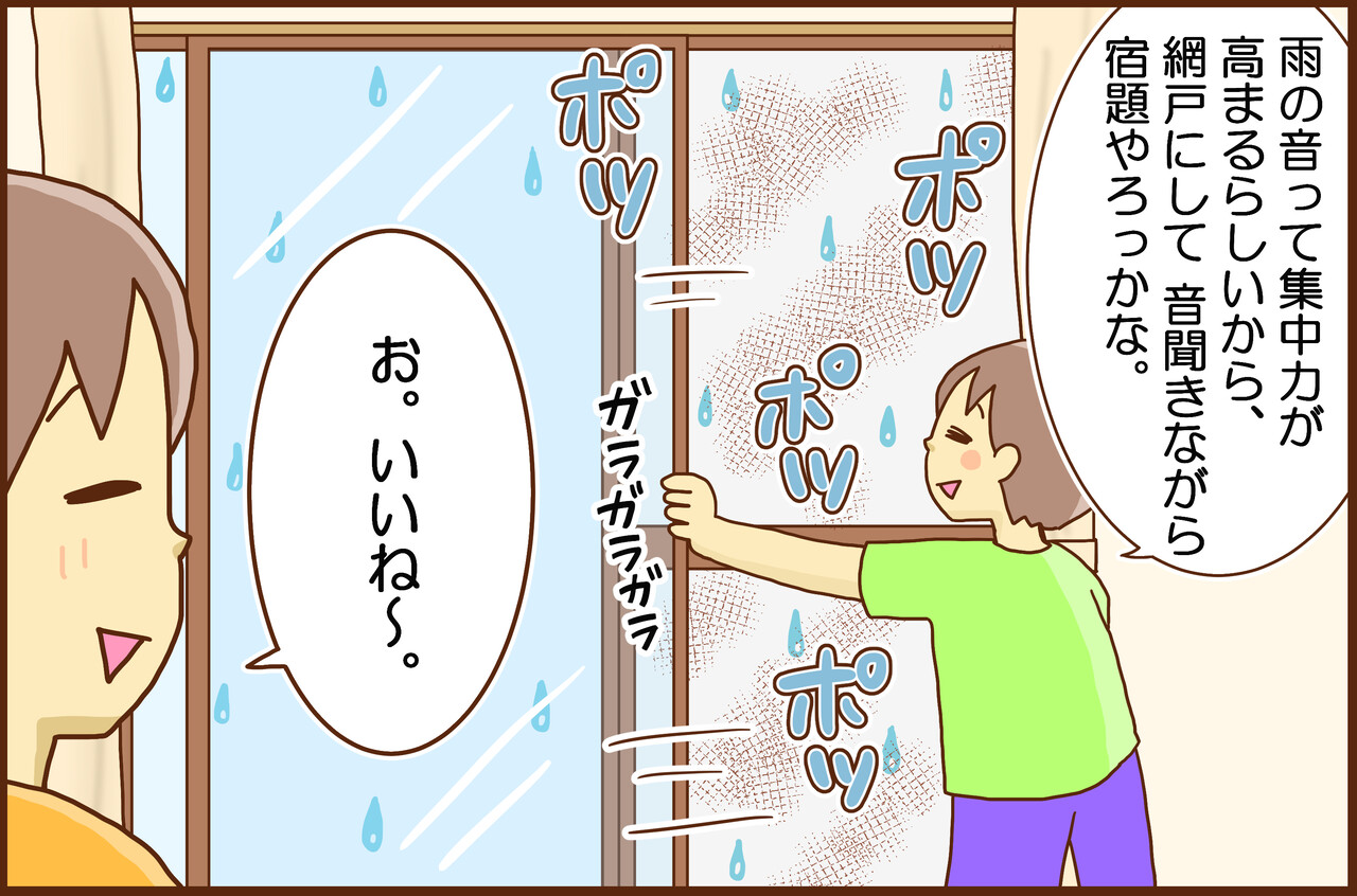 雨の音で集中力が高まる。。