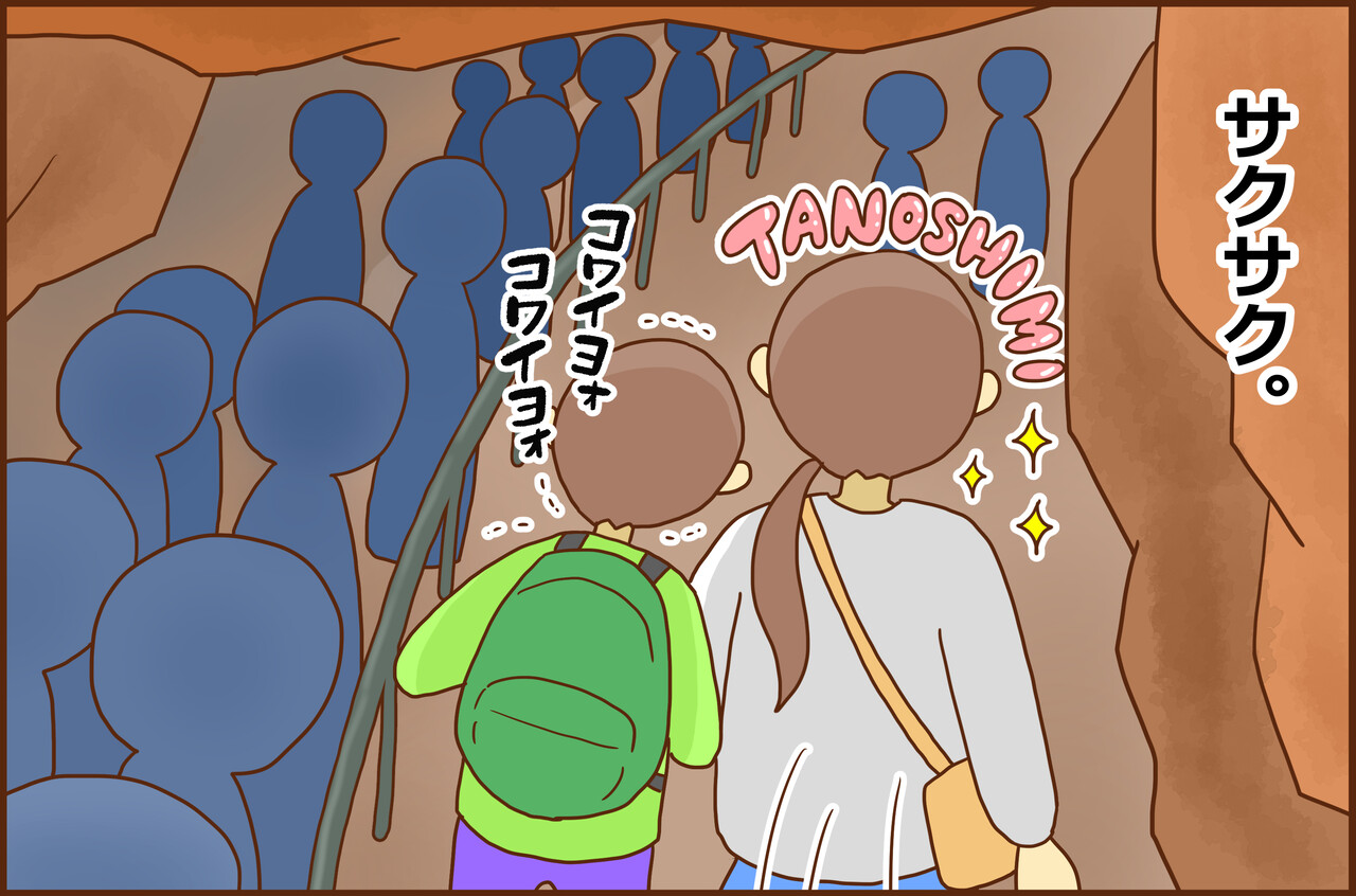 待ち列が洞窟の中なので