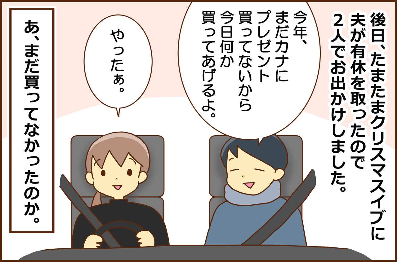 夫とクリスマスプレゼント交換② 2025/01/09 溢れんばかりのアホ感漂う息子たち、ADHDキョウタ中3・あまのじゃくアイキ中1の育児日記や、自分の好きなものをかいています。>>自己紹介はコチラ【お願い】LINE通知の機能終了に伴い、新アプリから更新を受け取っていただけると嬉しいです! >>続きます* * * * * * * * * * ・よかったらコチラも読んでみてネのコーナー・これが定めなのか! もう、やってって言ってもやってくれなそう(笑) * * * * * * * * * * ★前記事に拍手ありがとうございます! ↑ ライン絵文字 発売中 ↑ *電子書籍発売中*カラフル男子牧場 -ADHD長男とお調子者次男の兄弟物語-【電子書籍】[ ラム*カナ ] 「夫婦」カテゴリの最新記事 < 前の記事次の記事 > コメント コメント一覧 (2) 2. むーみん 2025/01/09 14:00 ご夫婦で仲良くおでかけ、行先も等身大な感じでホッコリします♡ インスタとかだと豪華なランチだの服はコレだのキラキラ写真てんこ盛りでうんざりしてしまって(笑) こういうのが良いんだよ!と孤独のグルメみたいな感想です。 0 ラム*カナ がしました 1. ポチ子 2025/01/09 08:23 楽しそうです♪カラオケ何歌いました? 0 ラム*カナ がしました コメントフォーム 名前 コメント 記事の評価 リセット リセット 顔 星 情報を記憶 コメントを投稿する