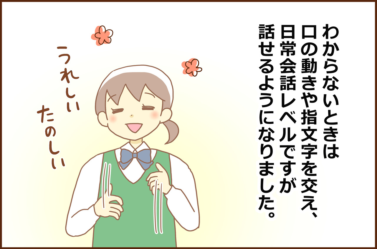 私も手話をしているので嬉しいです。難しいけど、通じたときの喜びがあり、なんとか続けてます😊