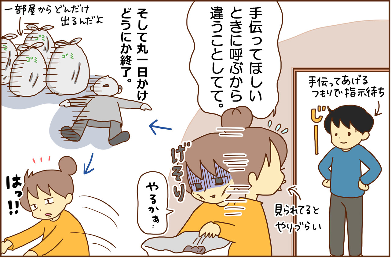 でも、夫が言ってくるなんてよっぽど散らかって見えるんだな…仕方ない…やるかぁ……