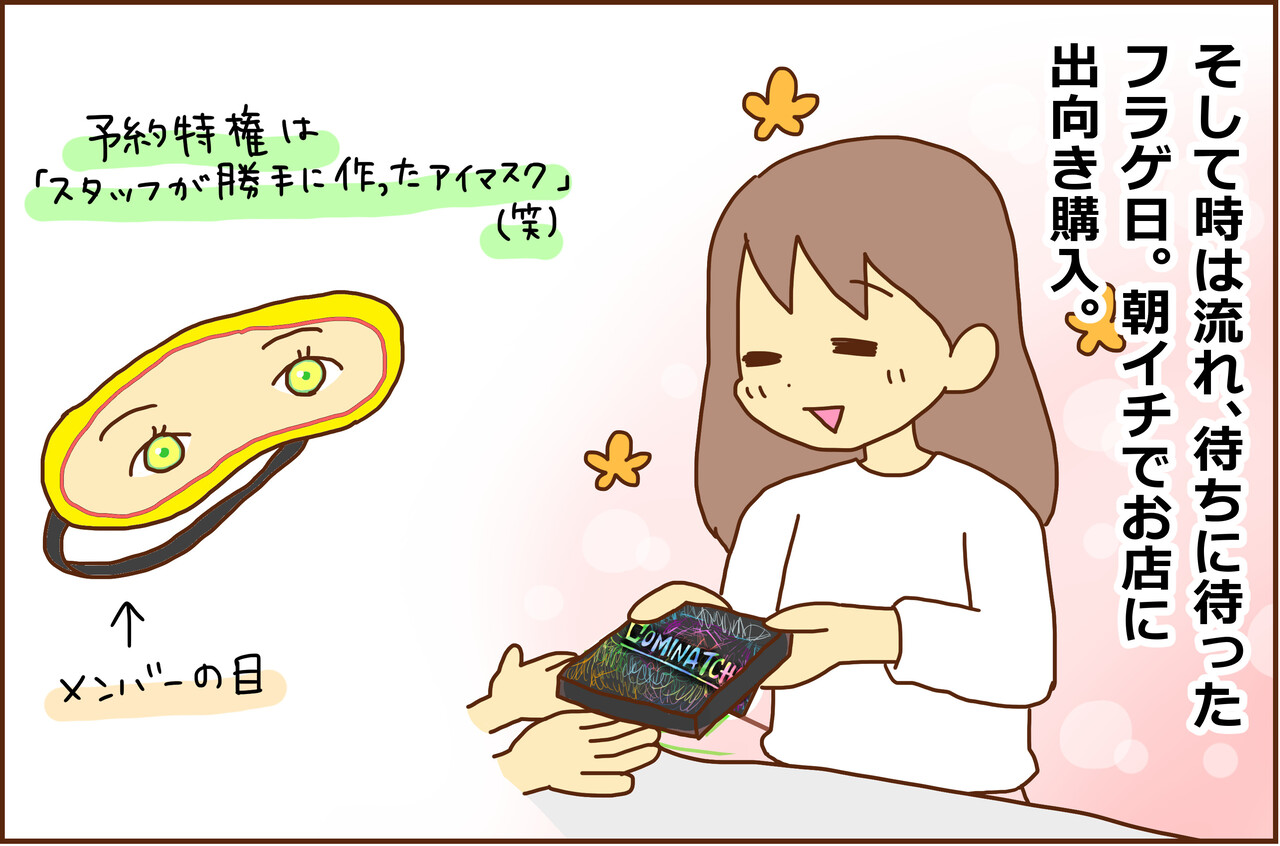 ワンチャンくじの商品のラインナップもいつも面白いし、今回種類もいっぱいあったし(まぁ外れたんですけど)、予約特権にアイマスクとか想像を超えてきたし、歌詞カードやブックレットや帯に、気持ちがたくさんたくさん込められていて、