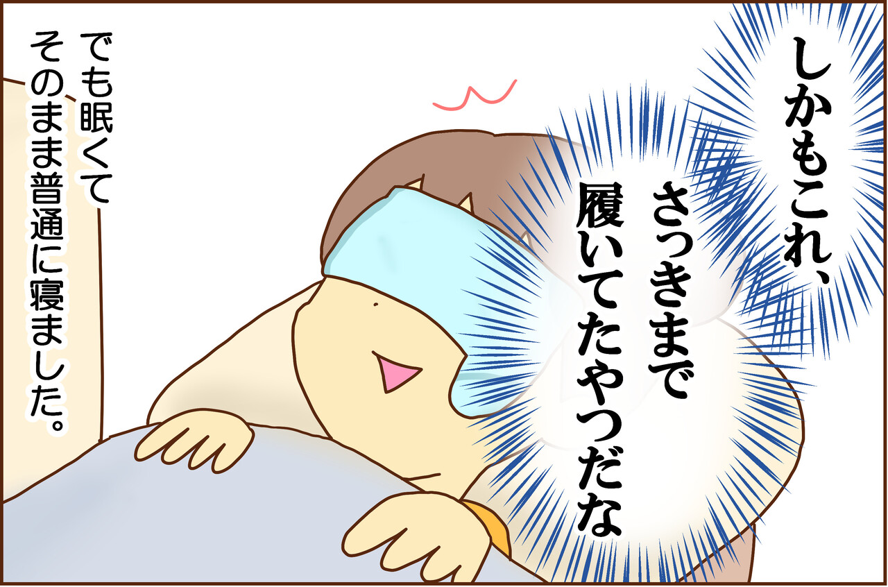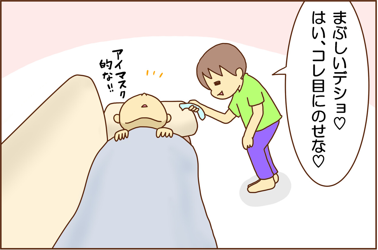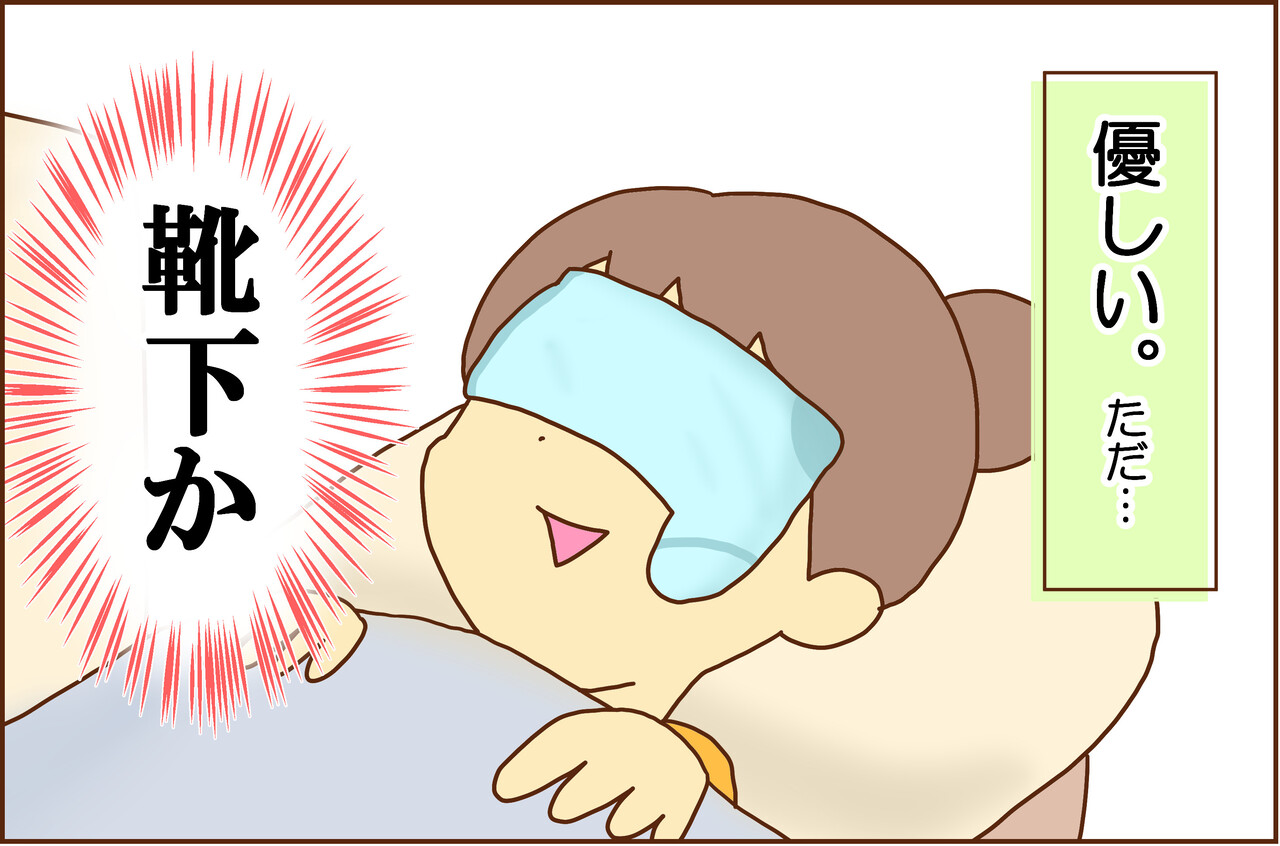 お昼寝時の、アイマスクが靴下を乗っけてくれた時のイラストを見て、大笑いしました!(笑)