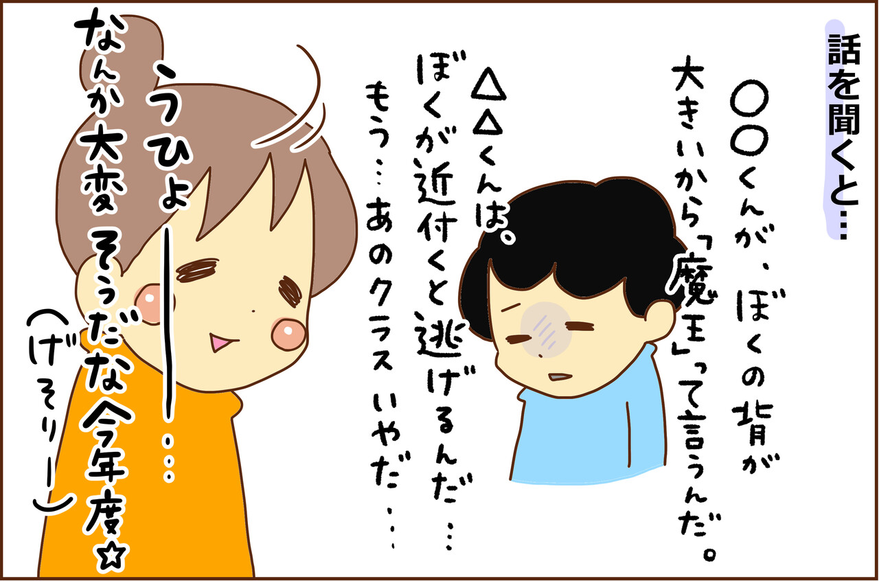 まだ本人から嫌だったお話してくれるので、一緒にどうしたらいいか、担任の先生にも相談したりして過ごしてました。