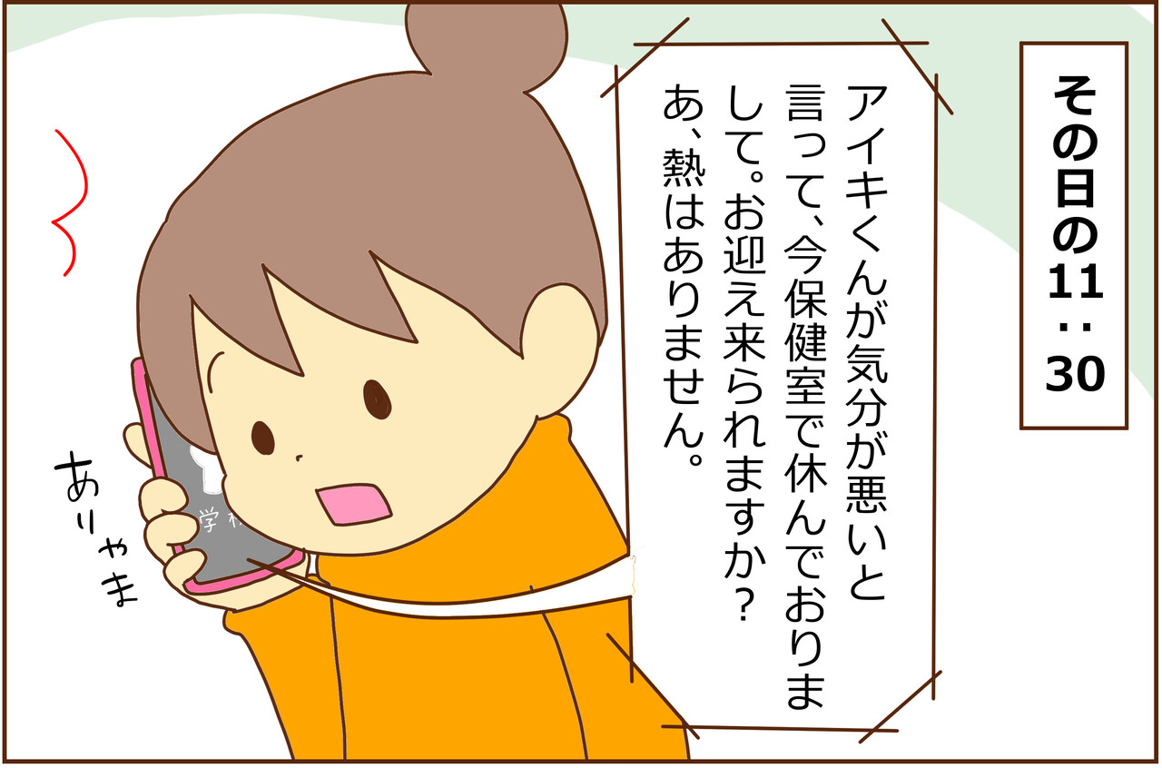 この気持ち悪くなりやすい現象、担任の先生には伝えてあり、アイキにも「もし気持ち悪く合ったら、水筒のお茶飲みな?」と言っております。冷たい飲み物を飲むと少し落ち着くようなので、真冬ですがアイキの水筒には氷がたっぷり入っています^^