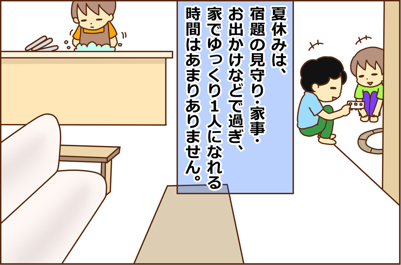 家事が一息ついて身体は休めても、気持ちまで休まる時がないんですよね