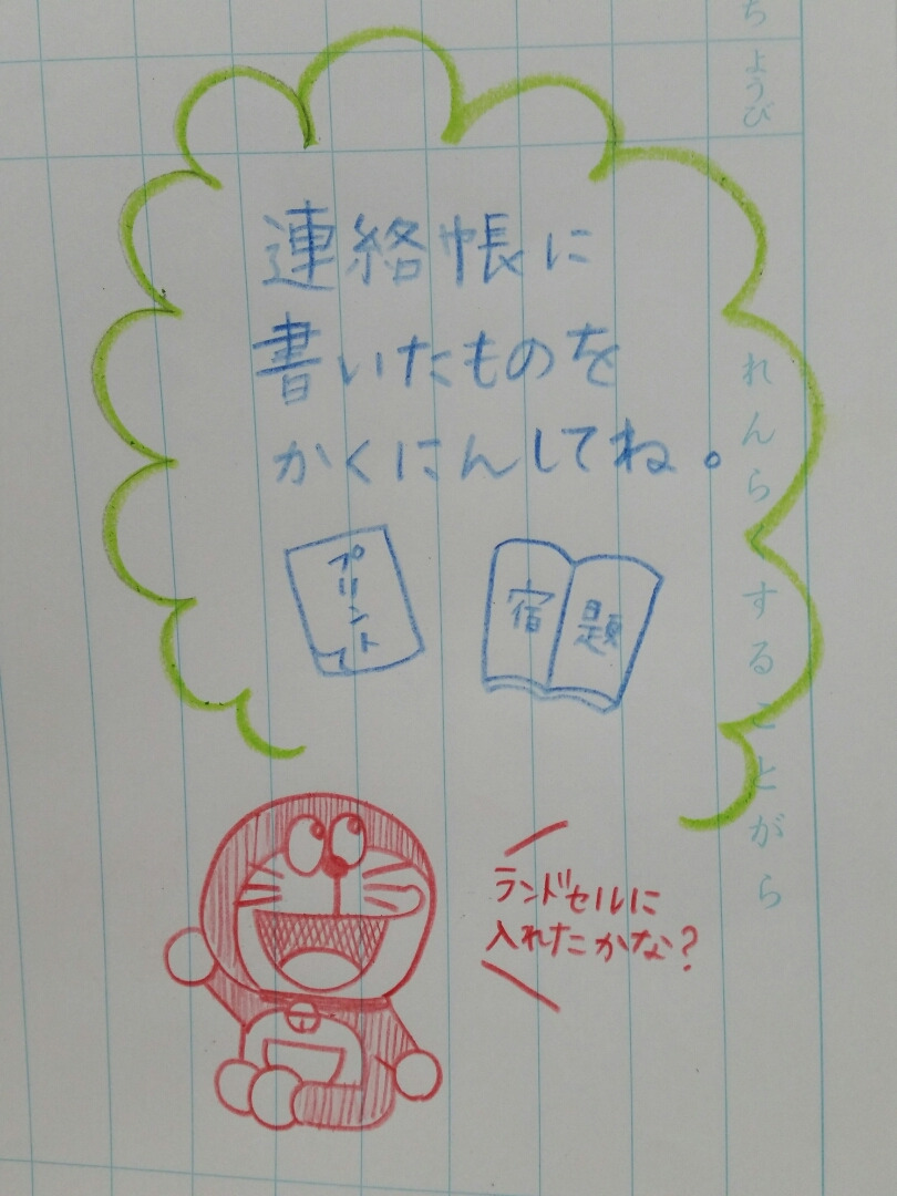 学校で必ず見る連絡帳に目立つようにメッセージ!
