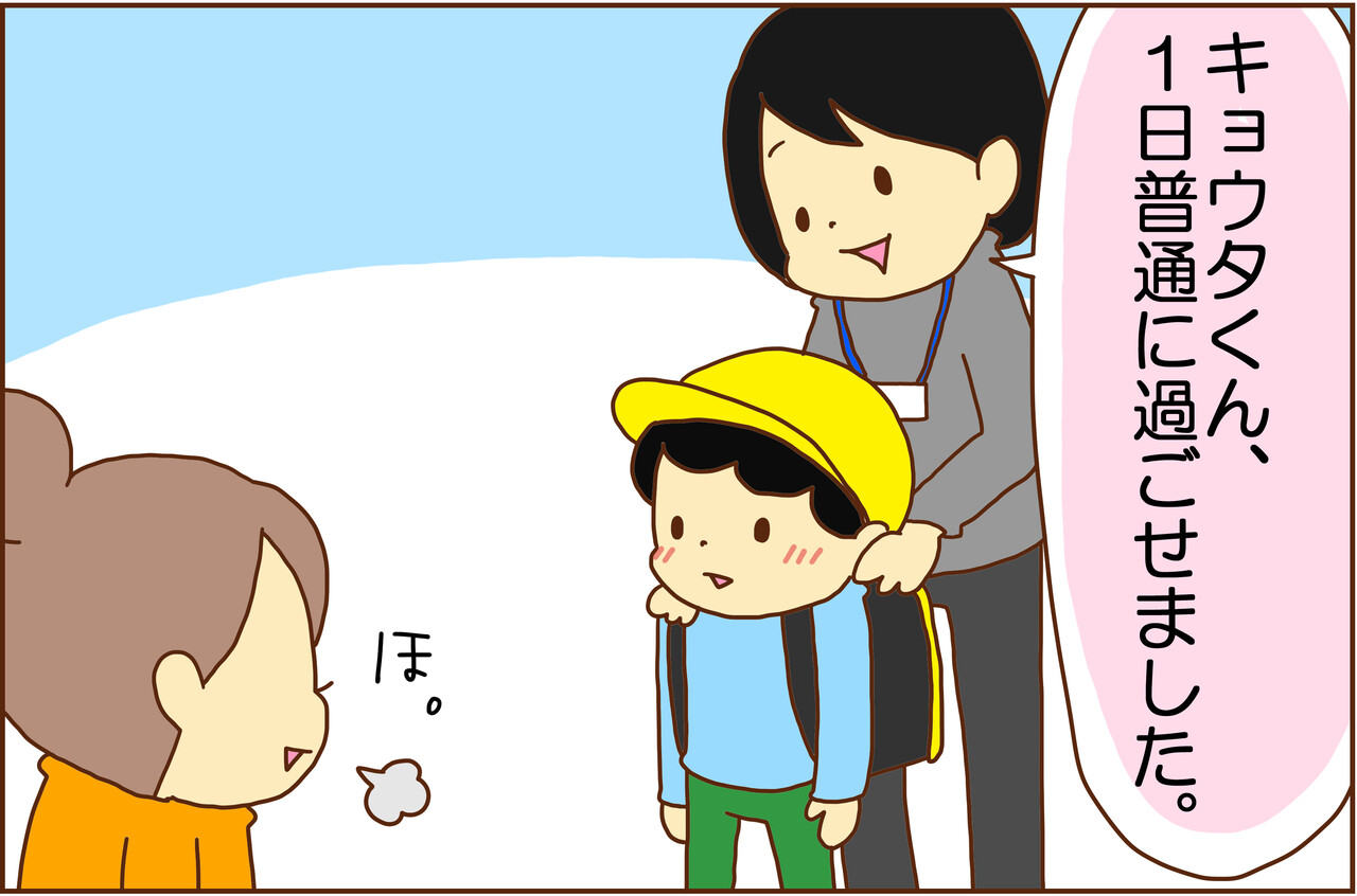 ようやく行けた学校の日、まだ本調子じゃないかもなぁと思い、帰りは車で迎えに行き、担任の先生が一緒に待っていてくれました。