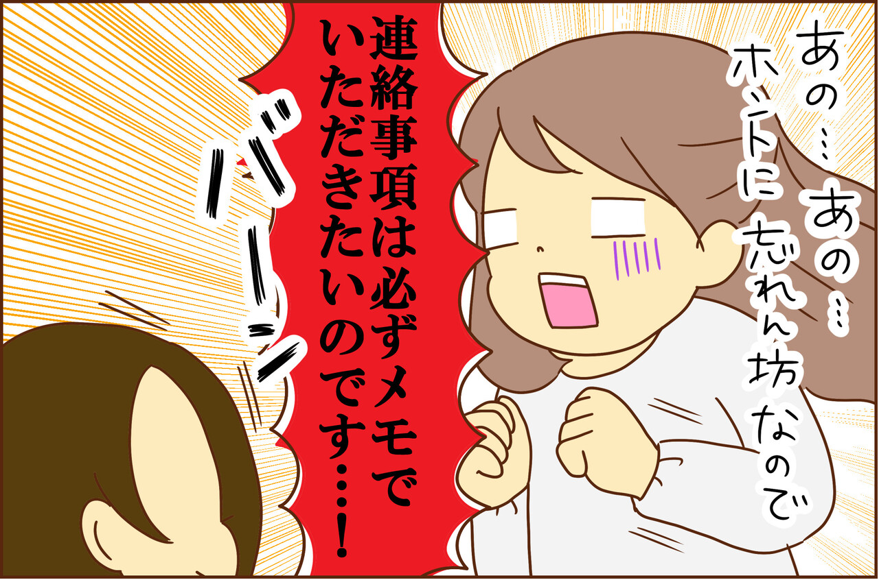 ・口頭だけの連絡は、まず覚えて帰ってこれないこと