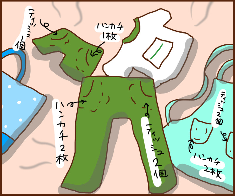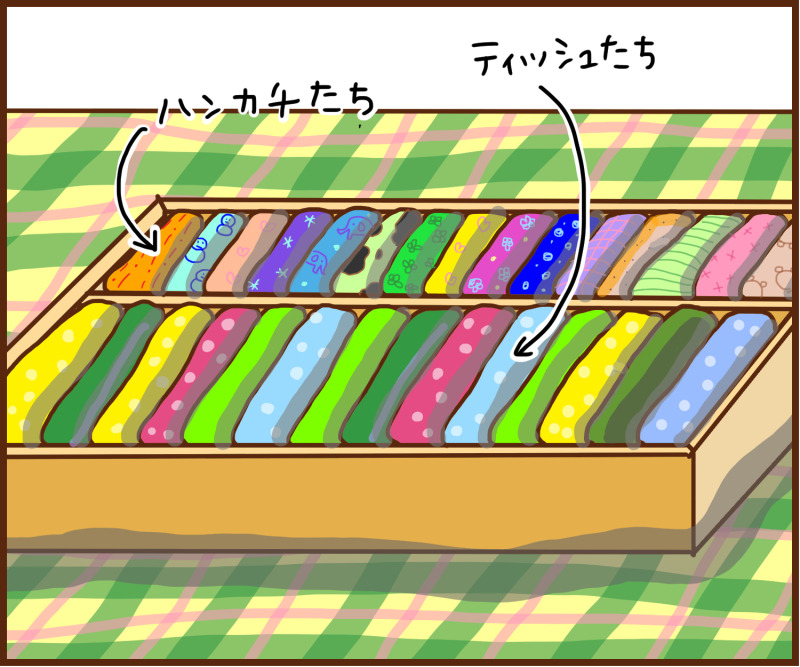 ティッシュは毎日新しいの持って行き、ハンカチは1~2枚を1週間使ってる感じになってきてる今日この頃。