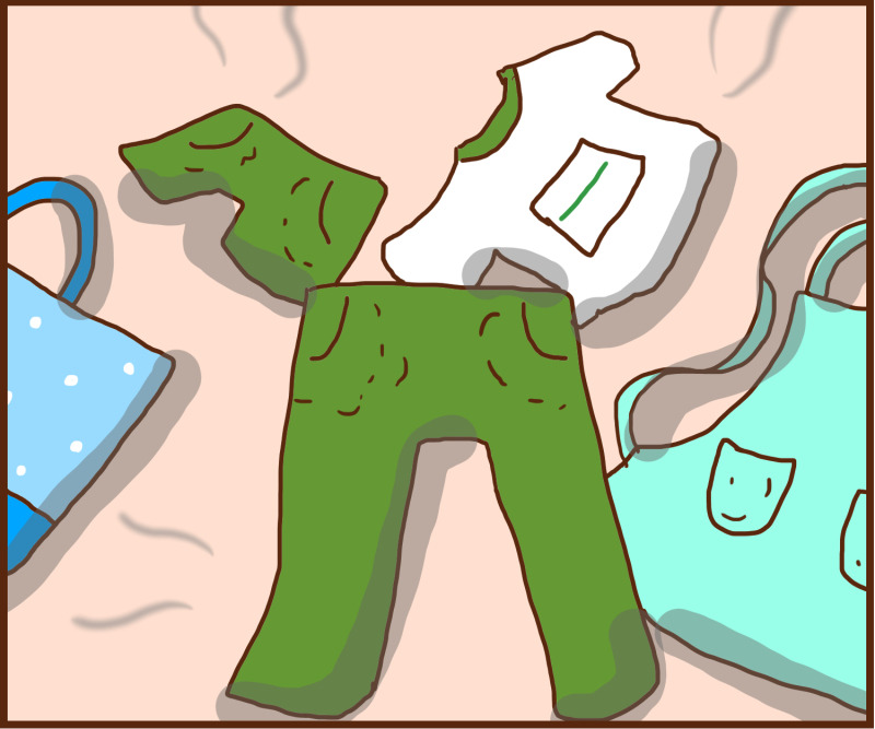 持ち帰ってきた体操着やエプロン。