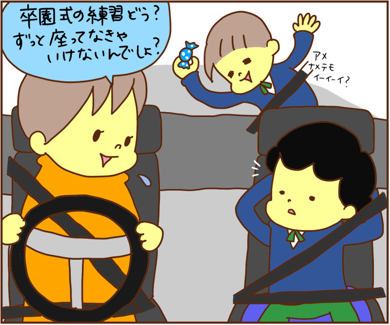 日頃できないのにぶっつけ本番にちゃんとできてたりするから凄い!って卒園式に親が鼻水ズルズルいわせてたりするよね(笑)