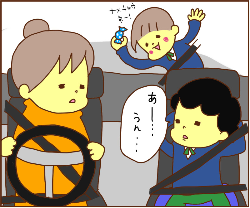 車の後部座席のシーン2コマでのアイちゃんがかわいい笑