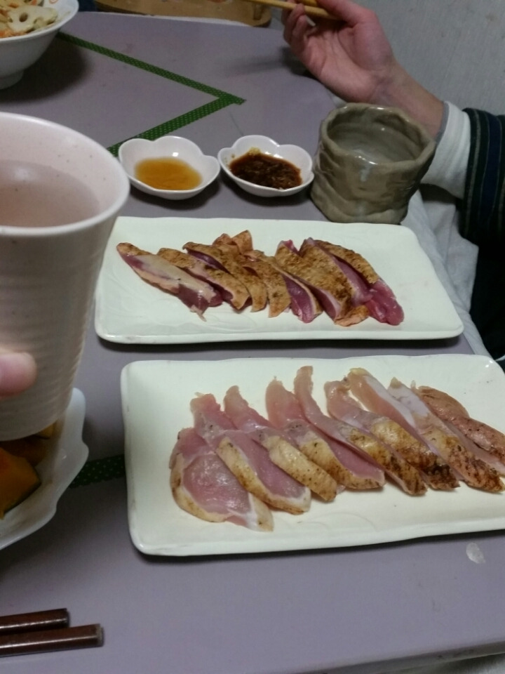 いただいたさつまあげも鳥刺しも、