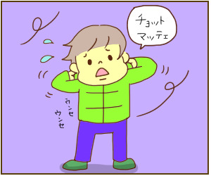 うちの5歳男子は今日はなぜか片足だけズボンを膝上までまくりあげてましたねー。。。寒いっちゅーに!かたくなに、下ろしませんでしたねー、片足だけ。なぜ!