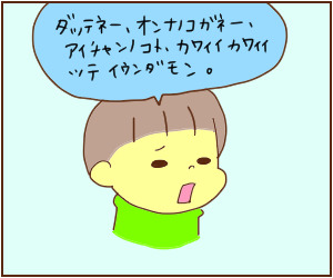 ちなみにうちの息子(4歳)は可愛いと言われたい派らしいです。ピンクやハートが好き、キティちゃん大好きで、若干将来が心配です(ー ー;)