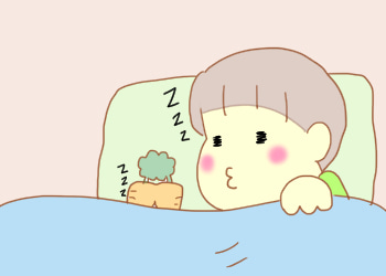 きゅうりと寝る男の子…