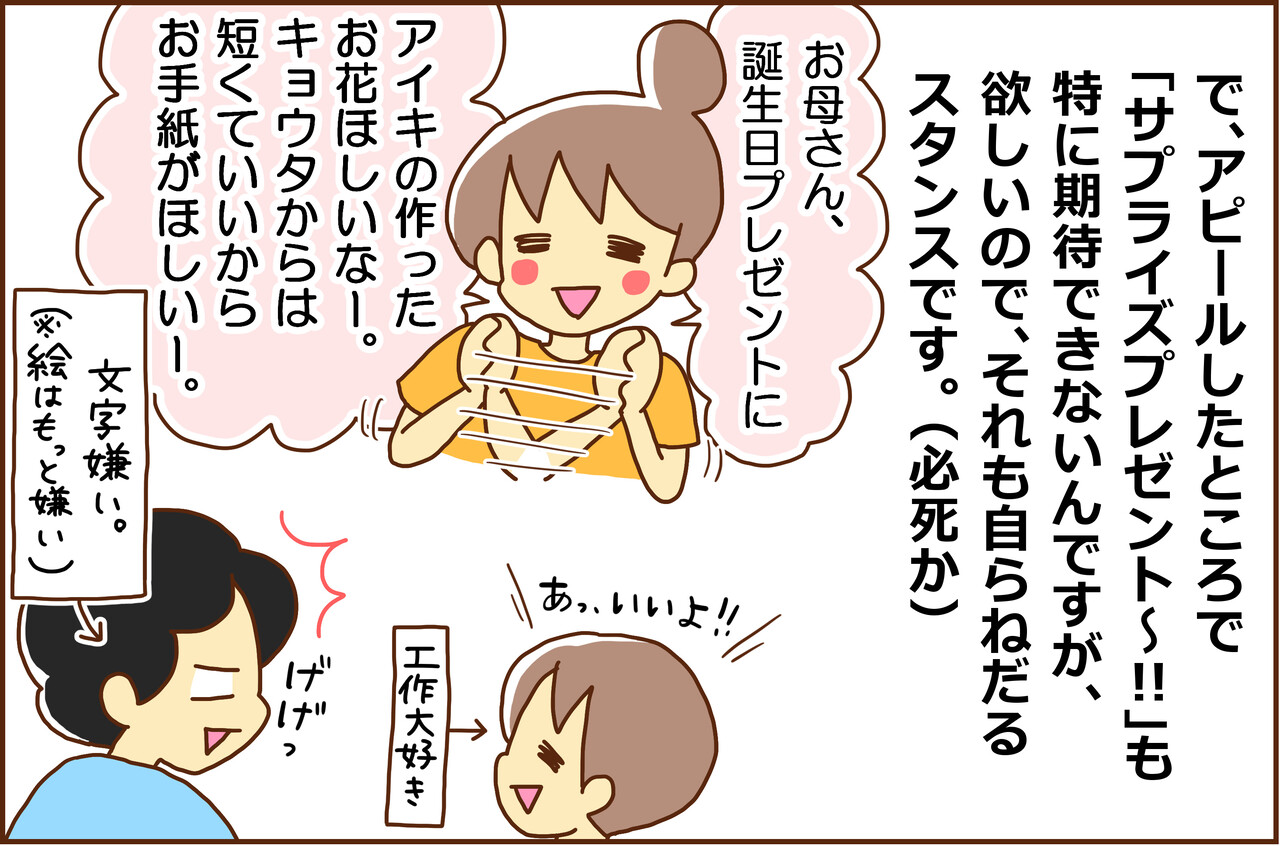 余談ですが、「お母さん」の誕生日って、なかなか誕生会とか企画してもらえなくないですか!母親主体になって、子どもの誕生日も夫の誕生日も準備するけど、母親自身の誕生日になると企画者がいない…!!