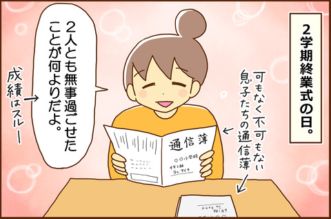 2学期の通信簿を見てしみじみ思う 2022/01/10 溢れんばかりのアホ感漂う息子たち、ADHDキョウタ12歳・あまのじゃくアイキ10歳の育児日記や、自分の好きなものをかいています。>>自己紹介はコチラ12月のお話し。自ら評価していくスタイル。朝送って行って、1時間目で迎え要請きて迎え行って昼休みにやるミニテストを送っ ... 続きを読む